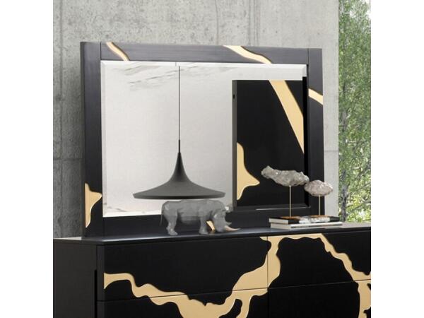 Product Details Style Contemporary Color/Finish Black/Gold Material Engineered Wood, Metal, Rubberwood Queen Bed + NS +Dresser + Mirror Yes Engineered