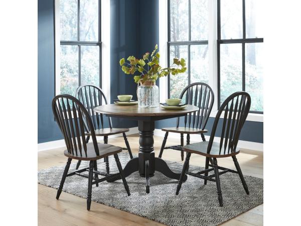 Windsor Side Chair- Black,Drop Leaf Table Top- Black,Drop Leaf Table Base- Black