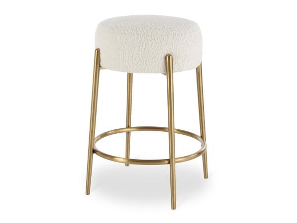 This plush counter stool is covered in a luxurious white faux shearling, suspended within satin black finished metal legs.