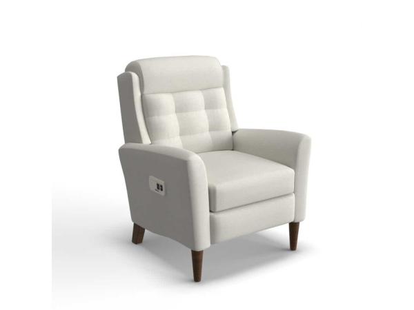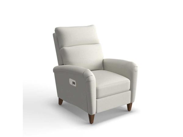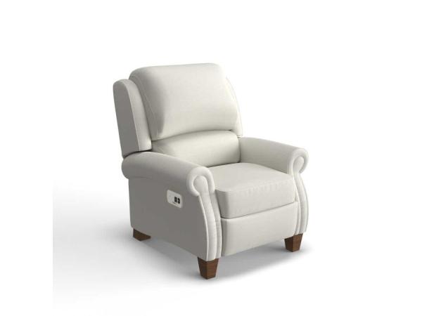 The Carleton High Leg Power Recliner with Headrest has an elegant balance of sophisticated comfort and classic charm. Rolled arms