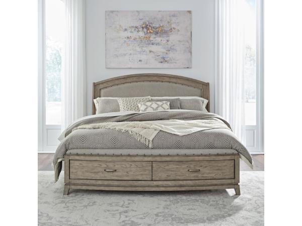 King Uph Storage Bed, Dresser & Mirror, Chest