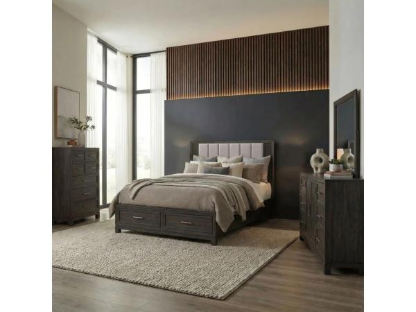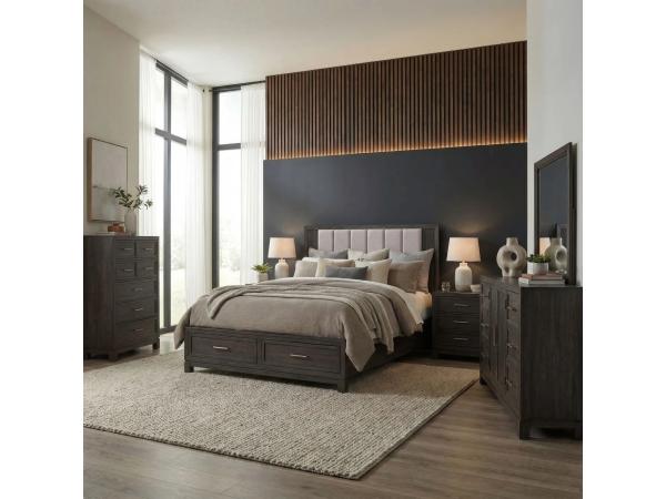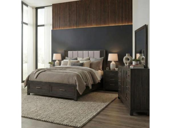 King Storage Bed, Dresser & Mirror, Chest, Night Stand