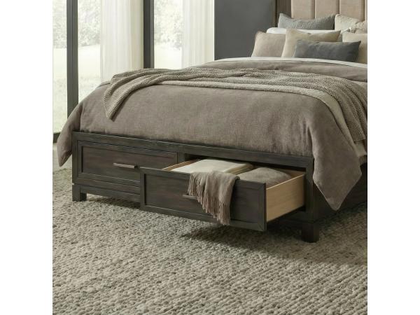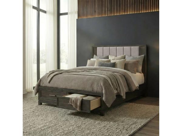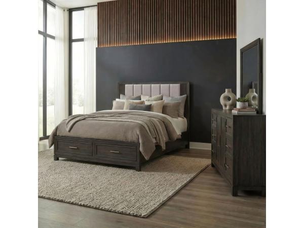 King Uph Panel Headboard,King Storage Footboard w/ Slat Roll,Storage Bed Rails,2 Door 6 Drawer Dresser,Landscape Mirror,5 Drawer Chest,Nightstand w/ Charging