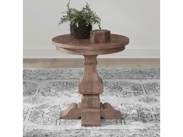 This round end table features a classic column-style pedestal base set on oversized shaped bracket feet. Bead molding adds a touch of traditional detail to this chairside piece.