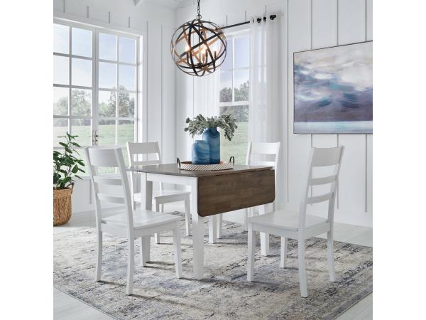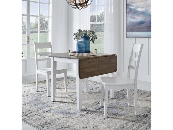 A great space-saving addition to any dining area, this table features two 11-inch drop-down leaves. It is designed with softly rounded corners and square tapered legs.
