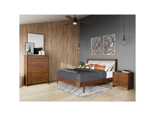 Product Details 5/0 Platform Headboard Constructed of select hardwood solids and random matched Walnut veneers 5/0 Platform Headboard Sleek low