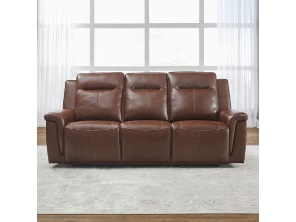 The Blair sofa in Cognac leather features dual zero gravity power recline with a power articulating headrest for optimal comfort and posture benefits. It includes bucket seating, head-to-toe support from a full pad-over chaise, and convenient USB-A and US