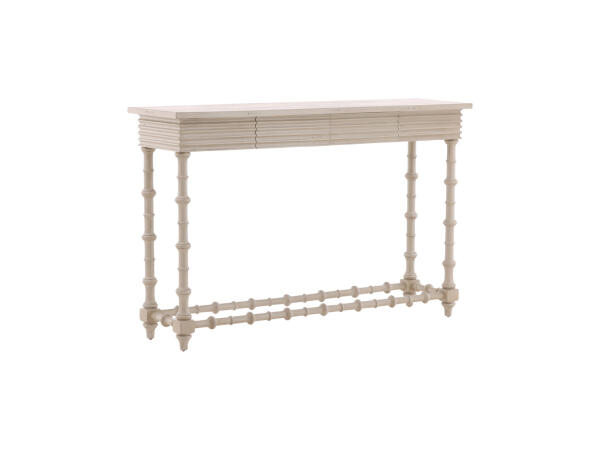 The Cream Alice Console is made from sustainably grown mahogany and features a hand-painted cream finish for a soft, timeless