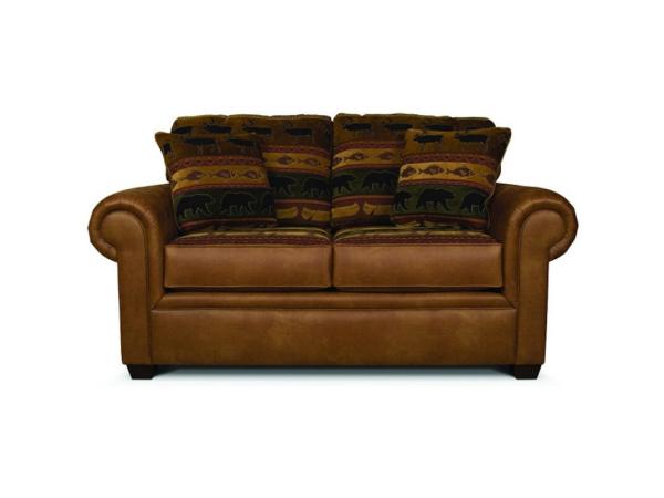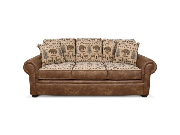 The lodge look is alive and well in our Jaden group. A three cushion style in married fabrics with pyramid