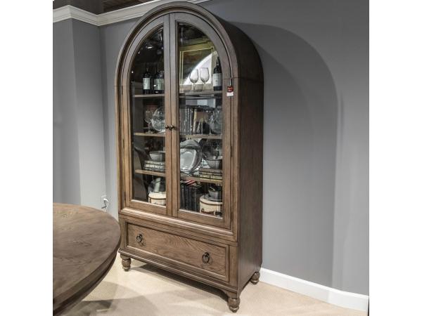 Crafted from poplar solids with white oak veneers, this Americana Farmhouse single pedestal tabletop features a wire-brushed dusty taupe finish and a fixed round top. It showcases a distinctive starburst veneer pattern, adding farmhouse style to your dini