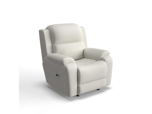 The Dorian Power Rocking Recliner with Headrest features grand proportions, soft cushions, tapered arm rests and laid-back style. Power adjustable