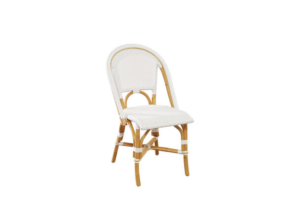 With a hand applied soft glaze highlighting the open weave of the rattan on the back and seat, the airy