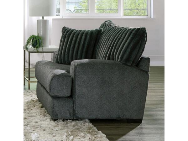 Product Details Style Transitional Color/Finish Gun Metal Material Chenille, Solid Wood Upholstery Color Gun Metal Ultra Soft Back Cushions and