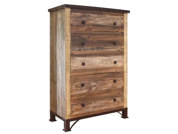 The Loft Brown Collection is constructed using pine wood that has been hand-stained and distressed, complemented by hand-forged iron hardware.