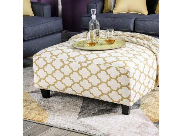The Moroccan lattice pattern on this ottoman is the perfect way to bring a touch of worldly forms into your