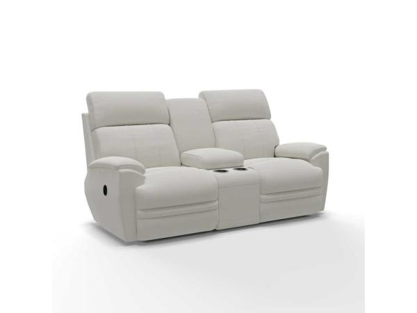 The Ava Reclining Loveseat with Console is cool, comfy and convenient. Flared, padded arms border tall, rounded box-border backs and