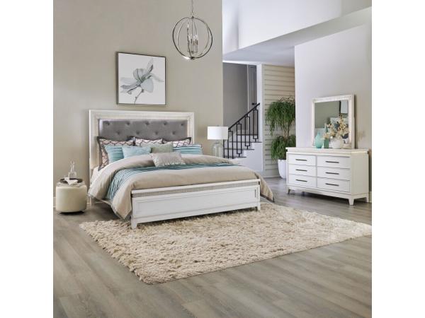 King Uph Panel HB w/ Lights,King Panel Footboard,Panel Bed Rails,6 Drawer Dresser w/ Lights,Lighted Mirror