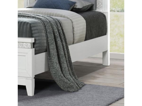 Crafted from Rubberwood solids with a Pearl White finish, this queen panel footboard enhances any bedroom. It features a floating style top, a rhinestone-accented apron for a touch of sparkle, and a tapered foot base.