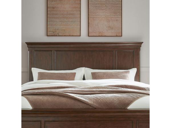 This king panel headboard is characterized by its heavy top crown and elegant under-top molding. Bead molding adds a touch of traditional detail to the design.