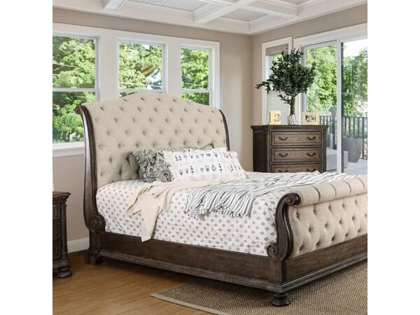 Luxury and style blends together to make this beautiful contemporary sleigh bedroom set. The fabric padded headboard and footboard provide