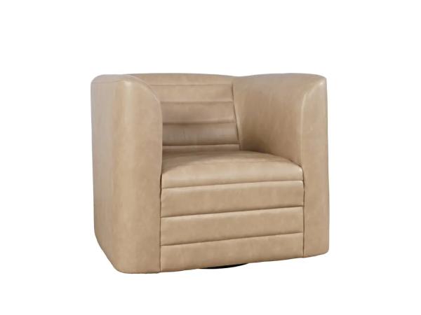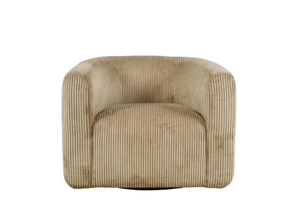 “The Biggs Swivel chair, crafted in tight corduroy, offers comfort and style. With its generous size and affordability, it’s a