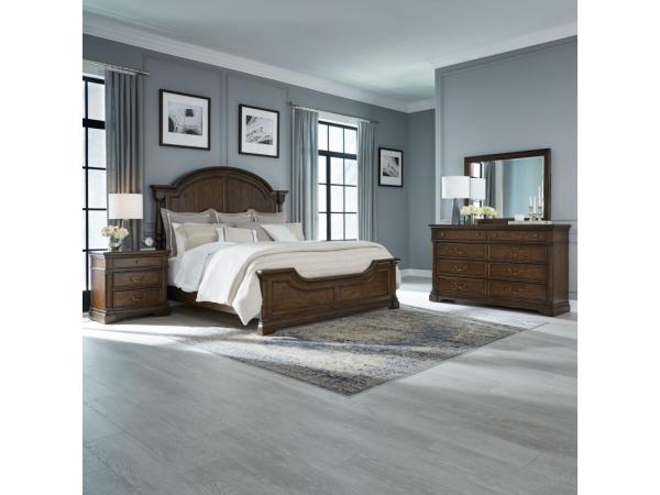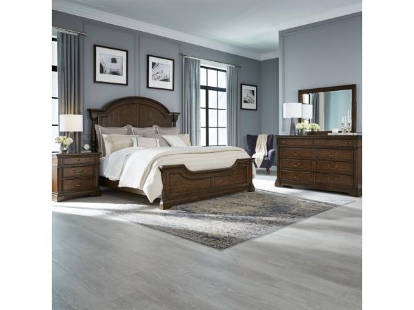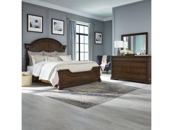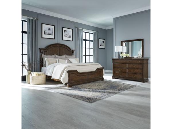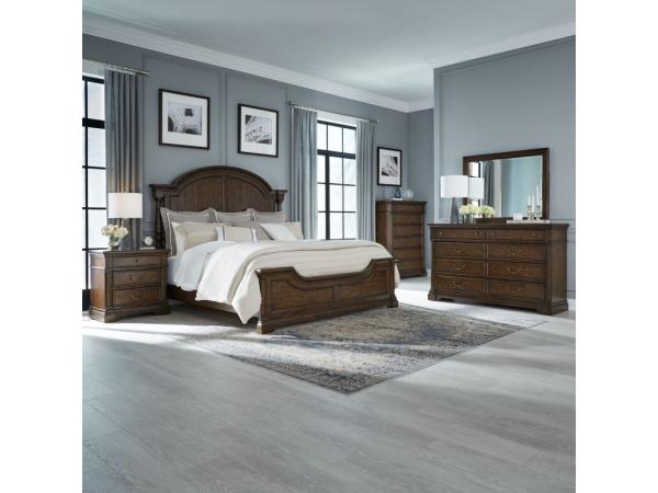 King Arched Poster Headboard,King Panel Footboard,Panel Bed Rails,8 Drawer Dresser,Landscape Mirror,6 Drawer Chest