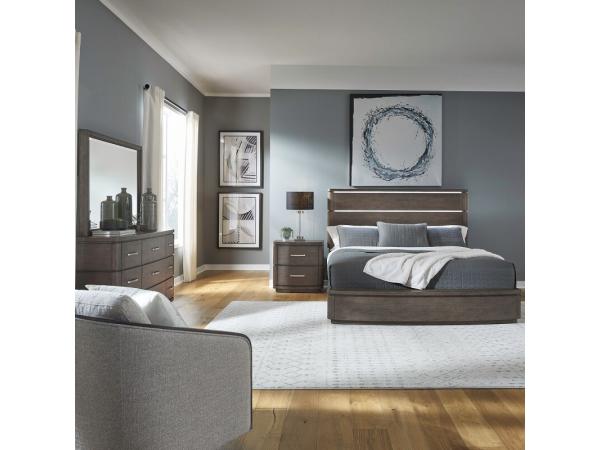 Cascade Falls Queen Panel Bed, Dresser & Mirror, Night Stand
