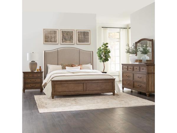 King Shelter Bed, Dresser & Mirror, Night Stand