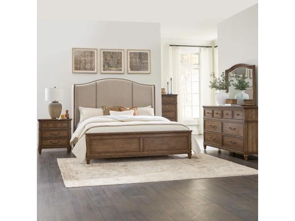 King Shelter Bed, Dresser & Mirror, Chest