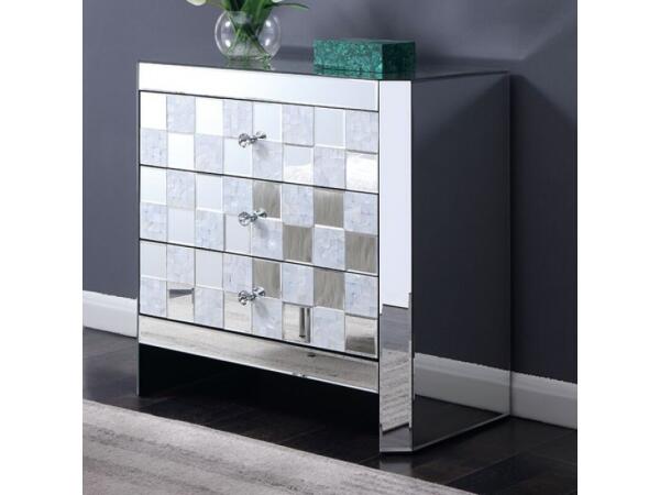 This contemporary mirror features top mirror inserts in conjunction with the main mirror panel, which complements the matching bed with