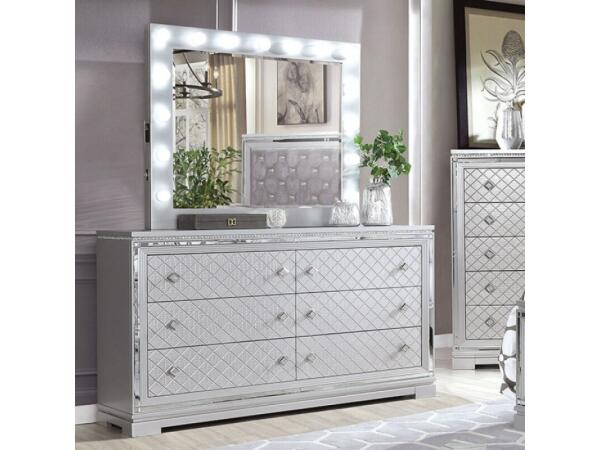Update your bedroom with elegant styles portrayed by this beautiful bedroom set. This silver gray mirror is part of this