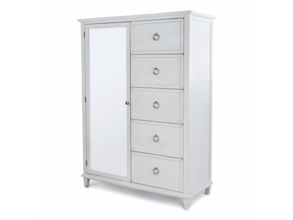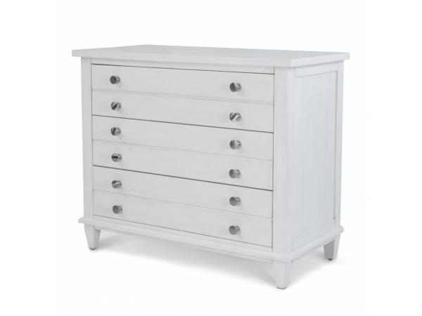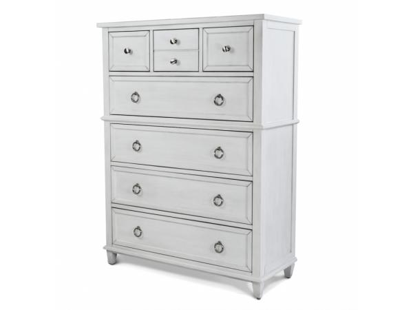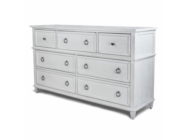 Cases are in poplar wood featuring mid-waisted molding. A 12-step brushed translucent white finish w/ soft grey glaze. Fronts are