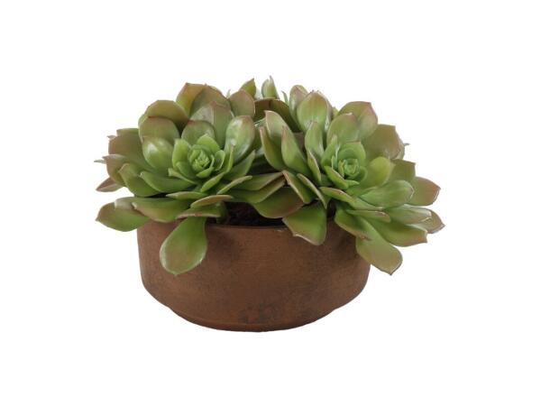 Grounded and modern, this accent features lush echeveria rosettes in rich green tones with softly blushed edges. Set in a