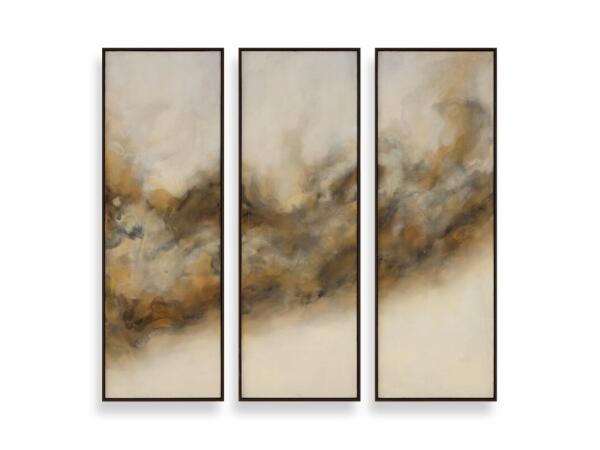 A breathtaking panorama unfolds as warm yellows, oranges, and soft grays intertwine in fluid swirls, crafting continuous movement across all