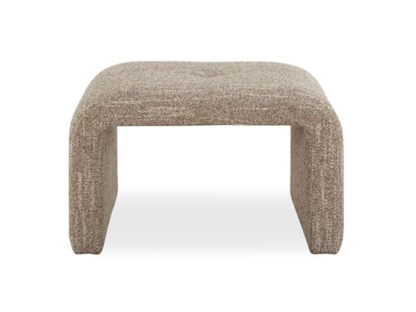 The Leora small bench is a chic and modern accent piece, defined by its sleek, waterfall silhouette. Fully upholstered in