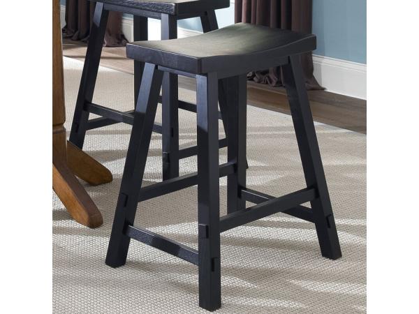 This 24 inch counter stool is crafted from rubberwood solids with a black finish, offering a contoured seat for comfort. It features nylon chair glides to protect your flooring.
