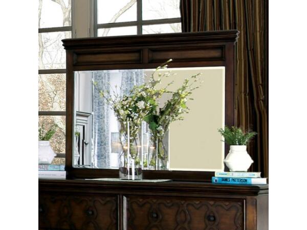 Darkly finished wood on this mirror sets the tone for any bedroom set. Solid plank construction ensures durability. Product Details