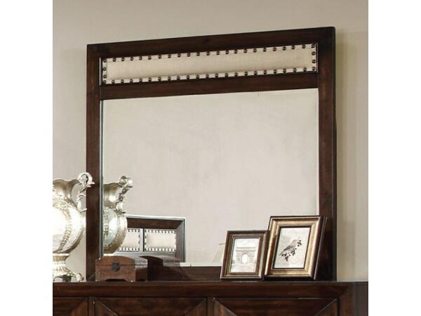 Grab some shut-eye without a care in the world. This mirror showcases bold nailhead trim along the padded linen-like fabric