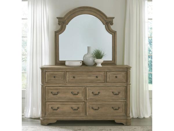 King Panel Headboard,King Panel Footboard,Panel Bed Rails,7 Drawer Dresser,Mirror