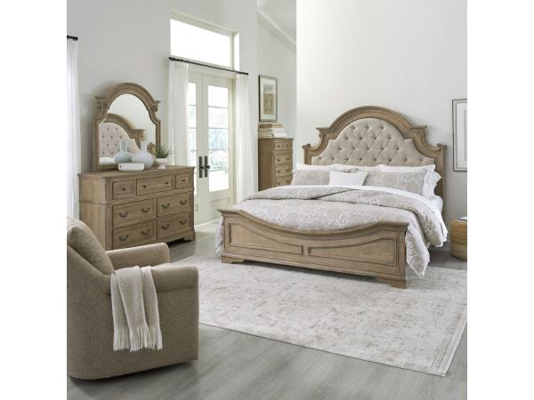 King Uph Panel Headboard,King Panel Footboard,California King Panel Bed Rails,7 Drawer Dresser,Mirror,5 Drawer Chest