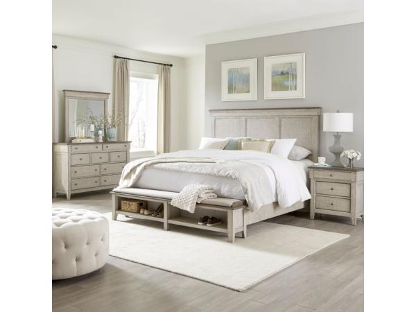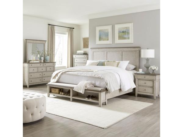 King Panel Bed, Dresser & Mirror, Chest