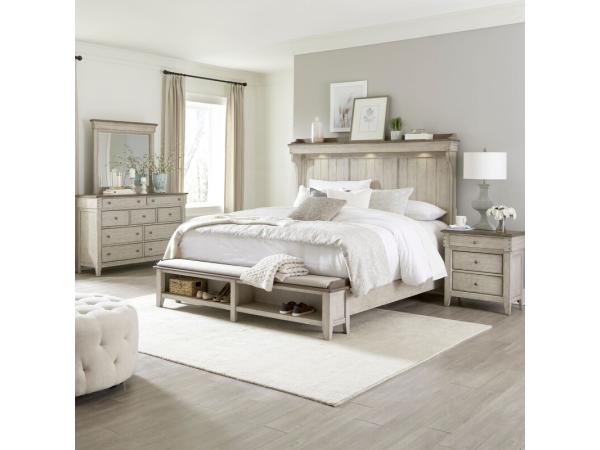 Ivy Hollow Queen Mantle Bed, Dresser & Mirror, Chest, Night Stand