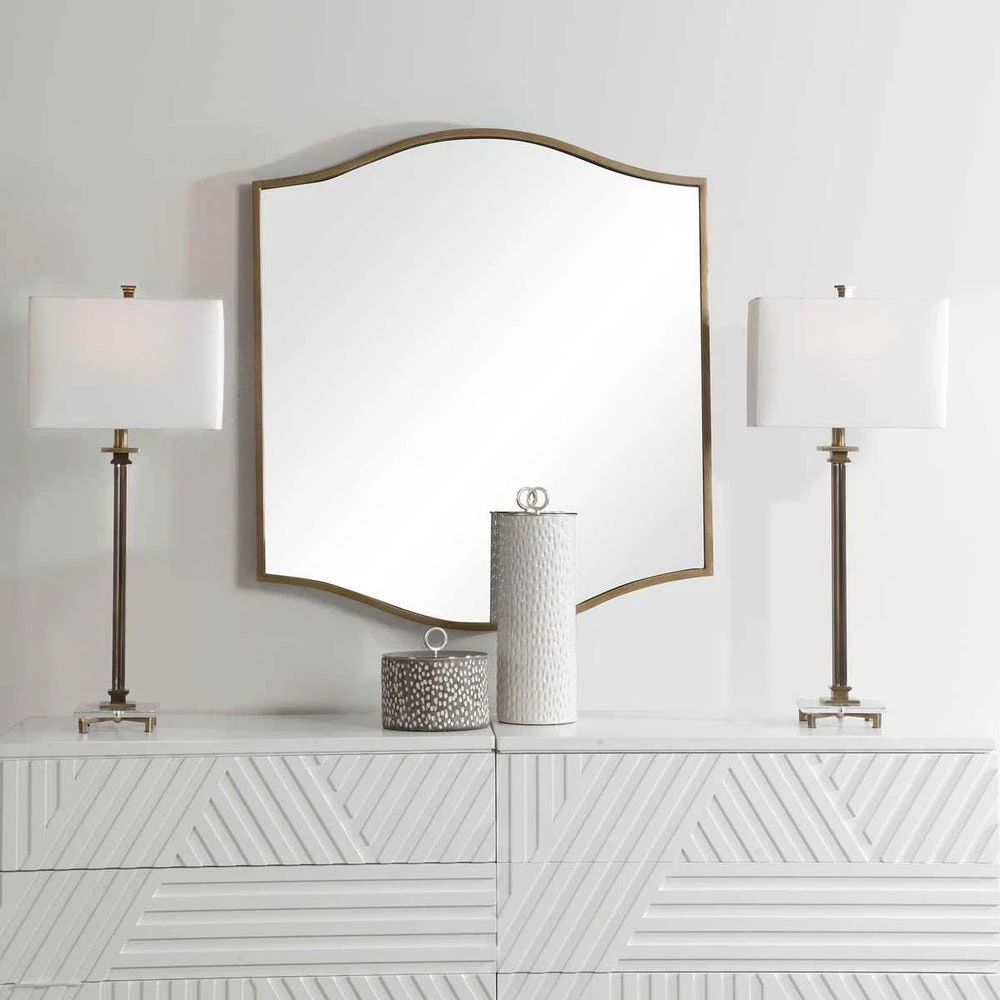 Refined and sophisticated, this antique gold mirror will add an updated traditional look to any space. Mirror has a generous 1 1/4″ bevel and may be hung horizontal or vertical.