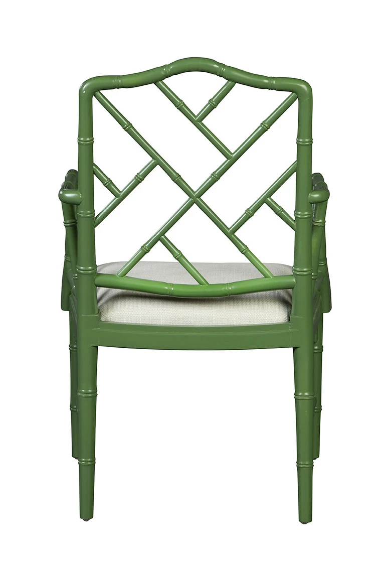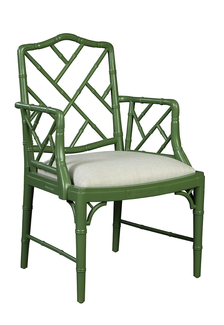 The Green Sawyer Arm Chair is a perfect fit for someone looking for a unique flare. It is made from durable grown mahogany and designed with character. The cushion, crafted from a high-performance linen blend, is comfortable and easy to clean. Its vibrant green color adds a fun pop to any room, like a breath of fresh air.
