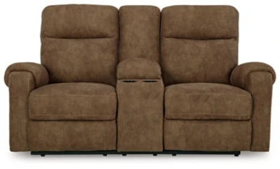 This reclining loveseat with console is your best shot for comfort and total relaxation. Its super soft faux leather, contemporary bustle back and contrast stitching team up for a big win with most any color scheme and room decor. With the pull tab reclining motion, you’re on your way to endless relaxation at home solo or when hosting friends.