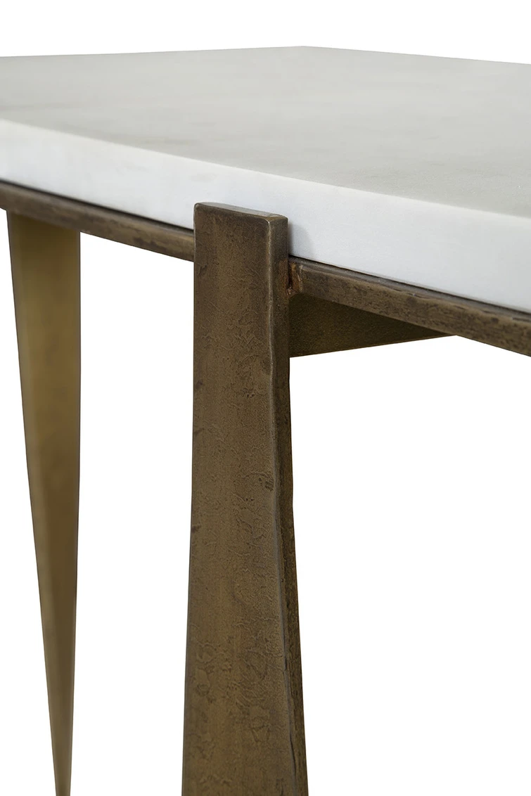 The Josie Console combines modern elegance with a touch of mid-century inspiration. Featuring a sleek white marble rectangular top, it exudes a luxurious feel perfect for an entryway or living space. The powder-coated antique brass-finished legs offer a rustic sensibility that beautifully contrasts with the cool, clean lines of the marble, creating a chic and minimal aesthetic to elevate any room.